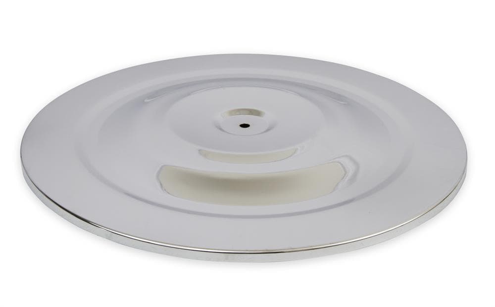 This Mr. Gasket Air Cleaner has chrome plated steel top and base. Fits most carburetors with a 5-1/8 inch neck. Has a 14 x 2 inch open paper filter element with wire mesh surround. Base has punch out for included pcv fitting. Carburetor stud and wing nut included. Overall height is 2-1/4 inch.